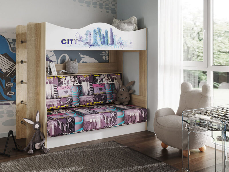 Кровать-трансформер «Сити» позволит на минимальной площади обустроить спальные места для двоих детей и даже взрослых.