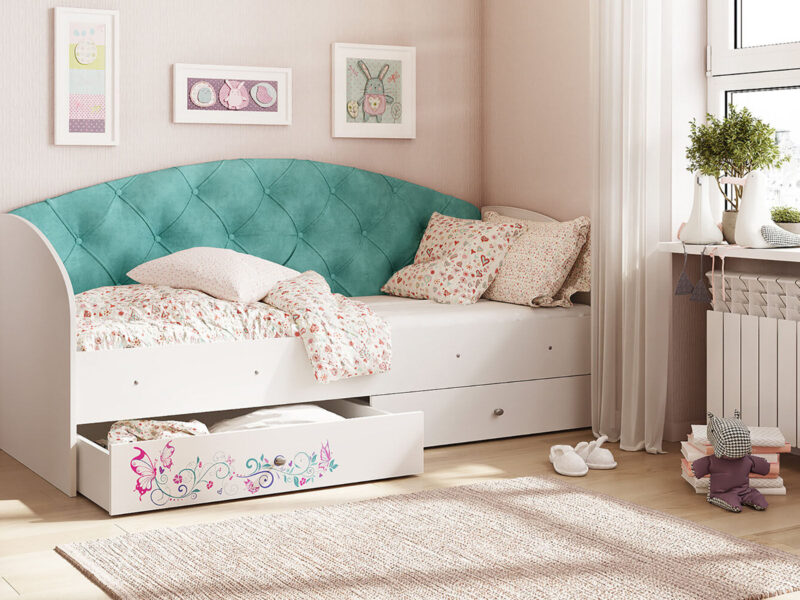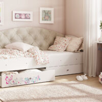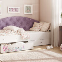 Кровать «Эльза» станет идеальным вариантом. Наличие двух выдвижных ящиков создают дополнительное место для хранения постельного белья, игрушек или вещей. Ламели в основании кровати, которые идут в комплекте, обладают ортопедическим эффектом. Спинка кровати обтянутая мягкой тканью, превосходно гармонирует с фотопечатью на фасаде ящиков.