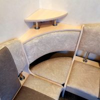 У данных уголков универсальная двухсторонняя сборка (можно собрать как на левую, так и на правую сторону). Все уголки могут комплектоваться столом и табуретами из представленных тканей и экокожи/экозамши.