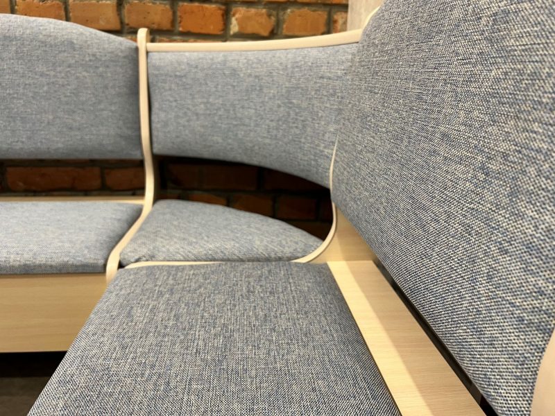 У данных уголков универсальная двухсторонняя сборка (можно собрать как на левую, так и на правую сторону). Все уголки могут комплектоваться столом и табуретами из представленных видов экокожи и рогожки.