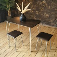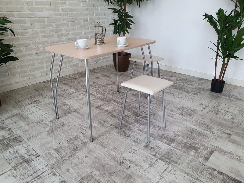 Кухонный стол с табуретами (МК) на металлических ножках станут отличным решением для Вашей кухни. Классический дизайн и надёжность данных предметов мебели успешно помогают им прекрасно смотреться практически на любой кухне.