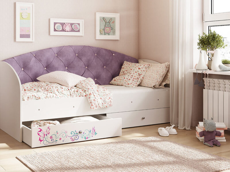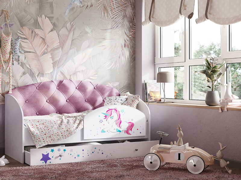 Кровать «Звездочка» станет идеальным вариантом в детскую девочки. Наличие выдвижного ящика, создает дополнительное место для хранения постельного белья, игрушек или вещей.