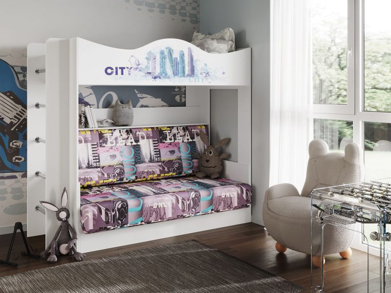 Кровать-трансформер «Сити» позволит на минимальной площади обустроить спальные места для двоих детей и даже взрослых.